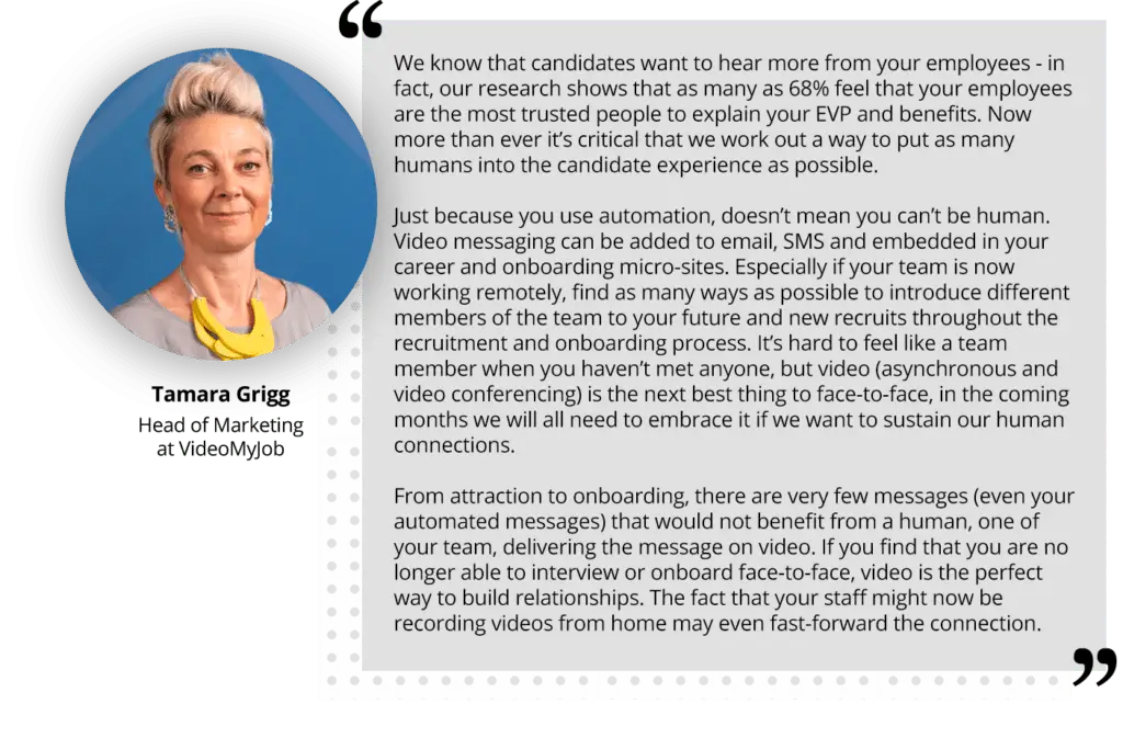 We mentioned that video communication is important. Let’s read why, in the words of Tamara Grigg, Head of Marketing at VideoMyJob.